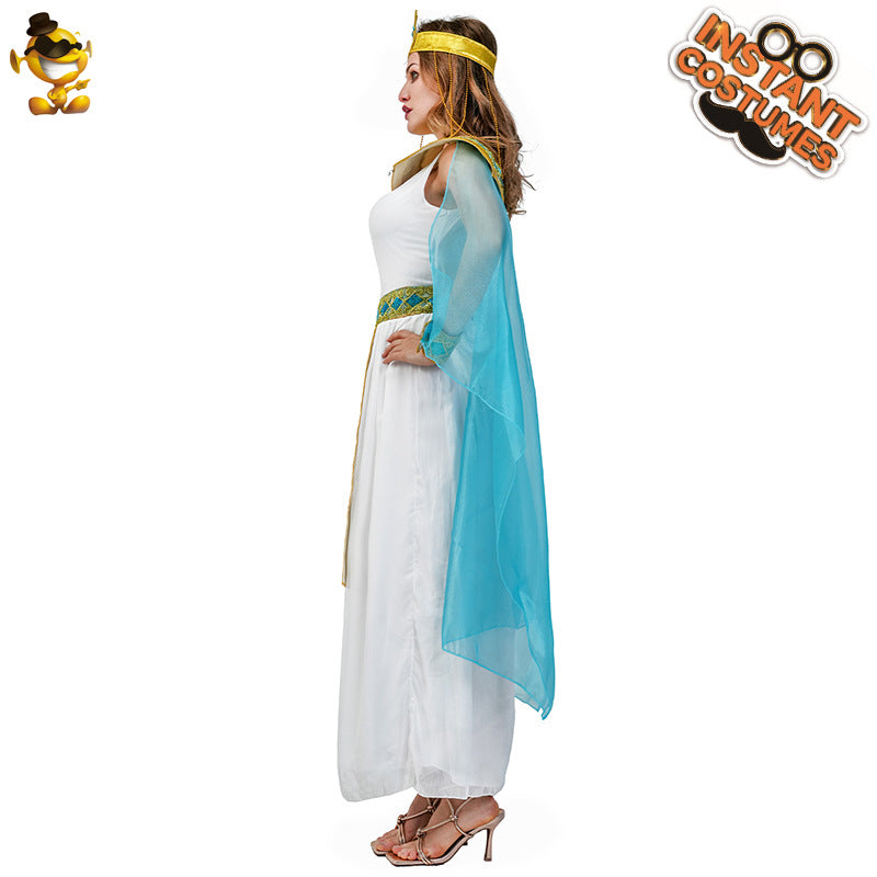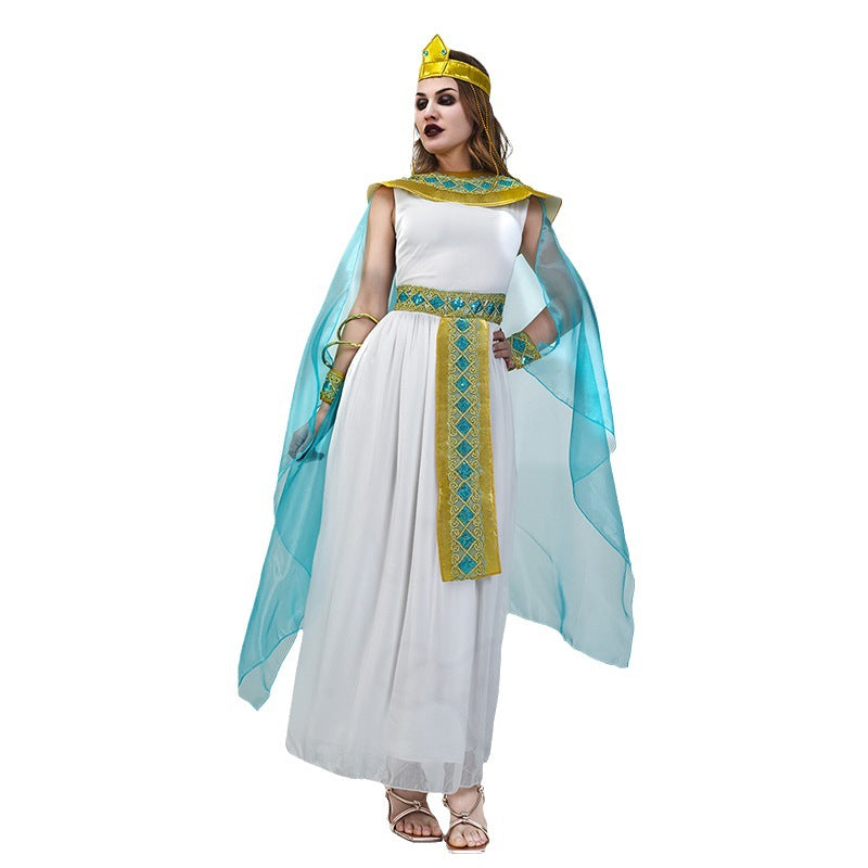 This elegant Egyptian queen costume is perfect for Halloween, cosplay events, or stage performances. The outfit features intricate detailing and a regal design inspired by ancient Egyptian royalty.