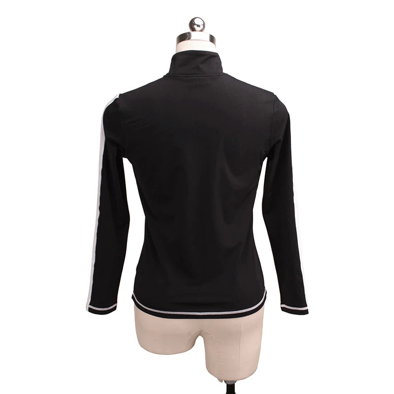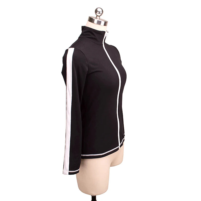 Made from soft polyester with a light fleece lining, this high elasticity figure skating jacket offers a streamlined, snug fit that moves with you during training and competition while providing gentle warmth without bulk. Custom options include a thicker black fabric for added warmth and free rhinestone name placement; the easy-care material retains stretch and shape, making it ideal for frequent practice on the ice.