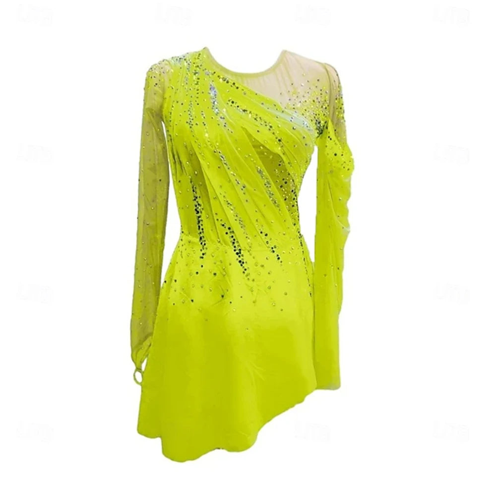 Elevate practice and performance with a stylish, functional figure skating dress designed for girls who need range of motion, comfort, and stage-ready sparkle. This patchwork-style dress pairs breathable mesh and flexible spandex for a flattering, performance-focused fit that moves with the body.