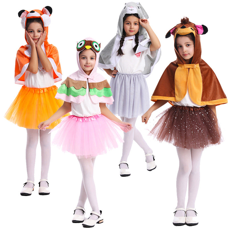 fox owl rabbit deer cape dress childrens stage costume Halloween party