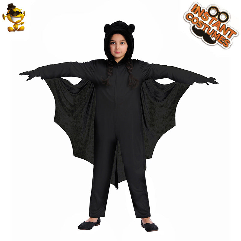 Halloween black bat bodysuit for kids stage performance costume party outfit