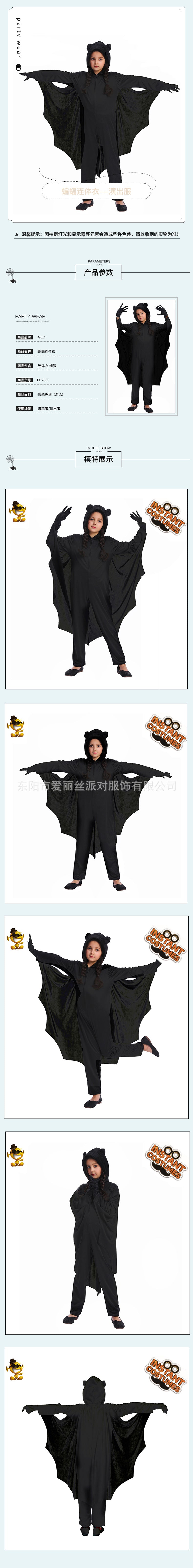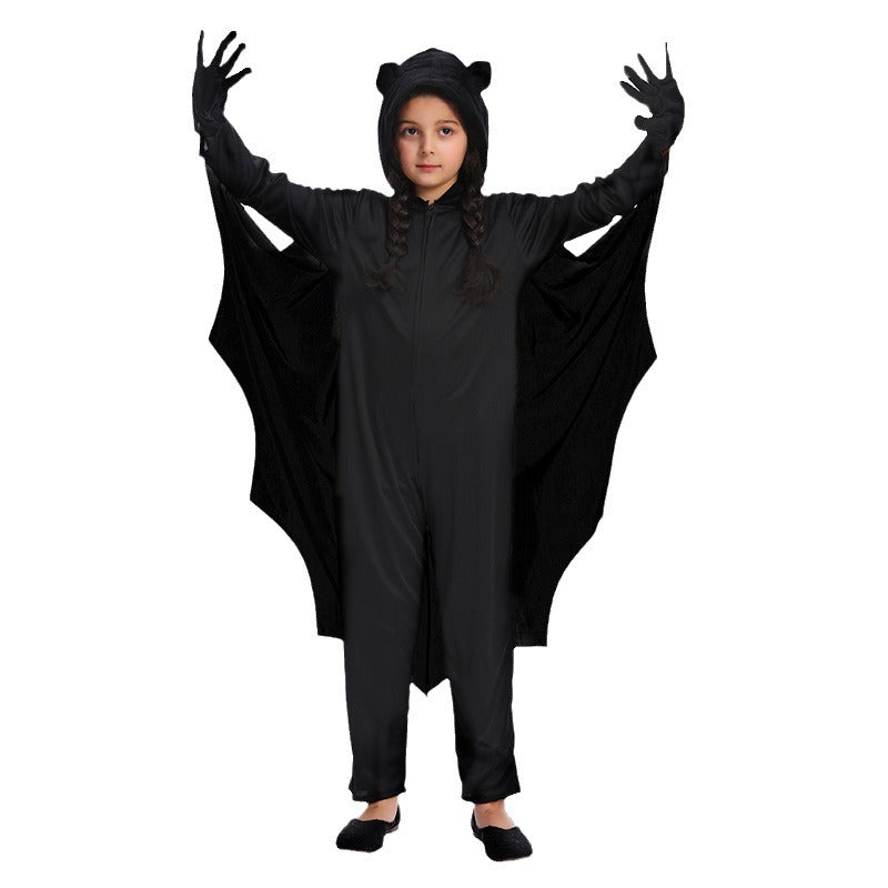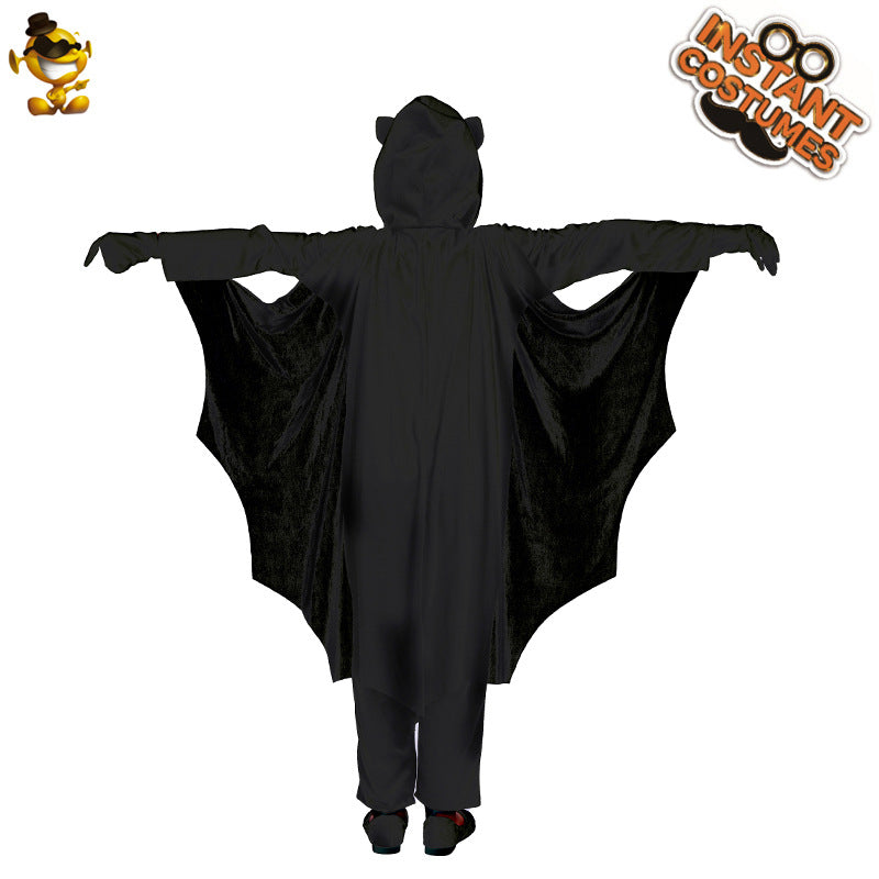 This fun and spooky costume is perfect for Halloween parties, stage performances, or themed events. Made from soft and lightweight polyester material for comfortable wear. Features a full-body design with bat wing details and a hood for a complete look.
