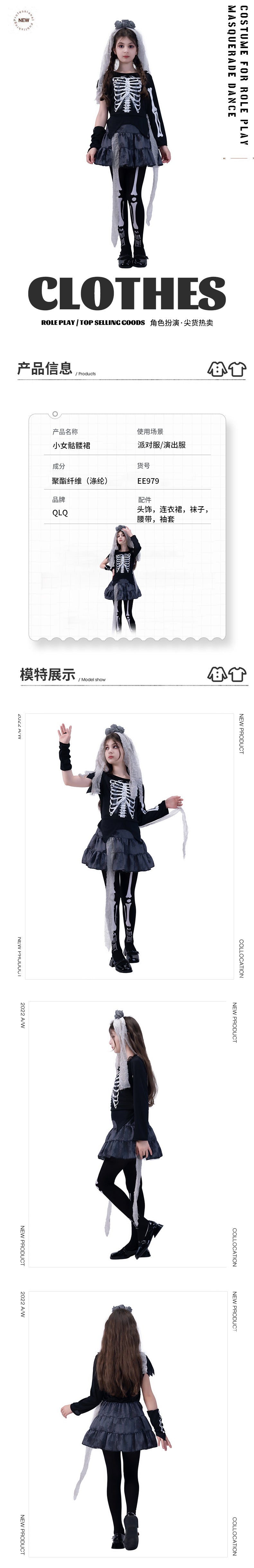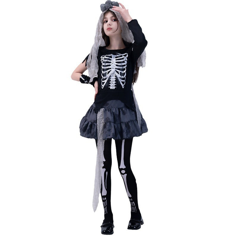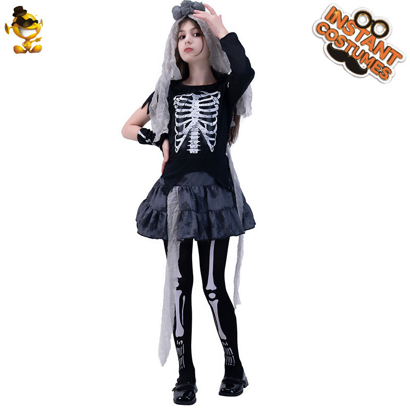 Halloween girls skeleton dress for cosplay costume party and stage performance