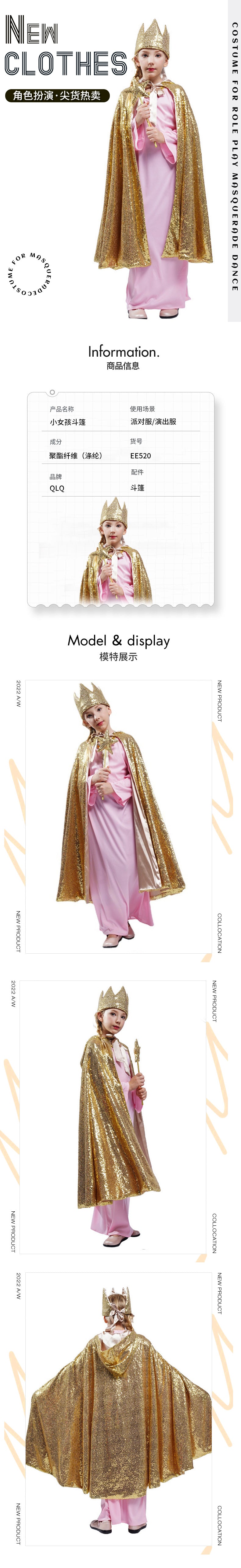 Kids Cosplay Costume Halloween Cloak for Girls Stage Performance Dress